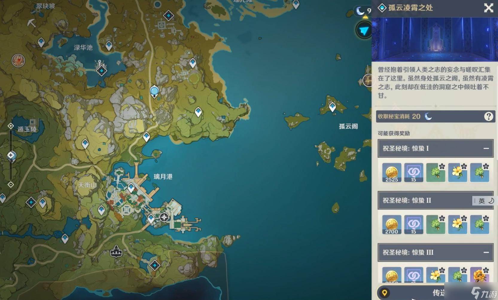 岩套副本位于璃月地区的孤云凌霄之处秘境,具体位置在孤云阁右下角的小岛上。该副本正式名称为祝圣秘境:惊蛰,是获取磐岩套(悠古的磐岩)和流星套(逆飞的流星)圣遗物的主要途径。玩家需要通过传送点抵达孤云阁区域,随后前往小岛上的秘境入口。副本挑战需消耗20点树脂,推荐使用雷元素角色应对超载反应机制。