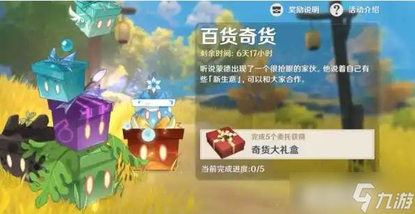 亲爱的旅行者们,百货奇货活动是原神中一个非常有趣的福利活动,参与条件很简单,只需要冒险等阶达到12级就能开启。活动期间,大家可以在蒙德城内找到名为立本的商人,他会随机提供七种不同的奇货匣奖励,每天提交他需要的材料就能开启匣子领取原石、摩拉、经验书等丰厚奖励。累计上交五次材料还能额外获得包含100原石的奇货大礼盒,记得每天登录别错过机会哦!