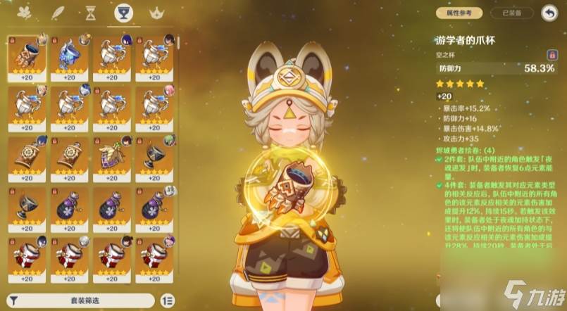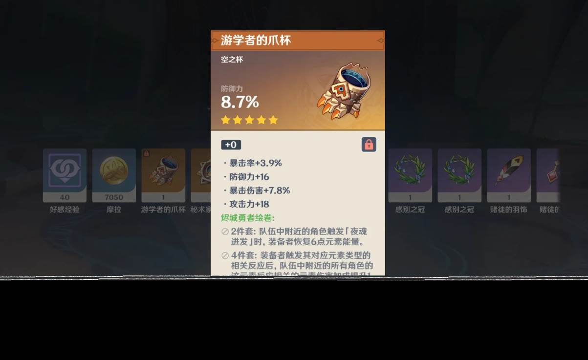 其中比较容易获得的是虹的行迹,精炼的造价也并不是很高。圣遗物可用剧团套来纯挂后台,站场想提升功能性依旧建议用烬城套。建议烬城四件一定要凑出来,因为它的优势基本在于触发套装增伤效果。充能可堆可不堆,堆的情况下可开大提升E的范围。E的覆盖率扩大后,更容易触发套装效果。就算不堆也不会影响循环,因为烬城有十五秒的增伤时间。只要在这段时间里面触发结晶,就能进行增伤的延续。慢慢培养可堆一堆充能,想快速成型就没有太大的要求。