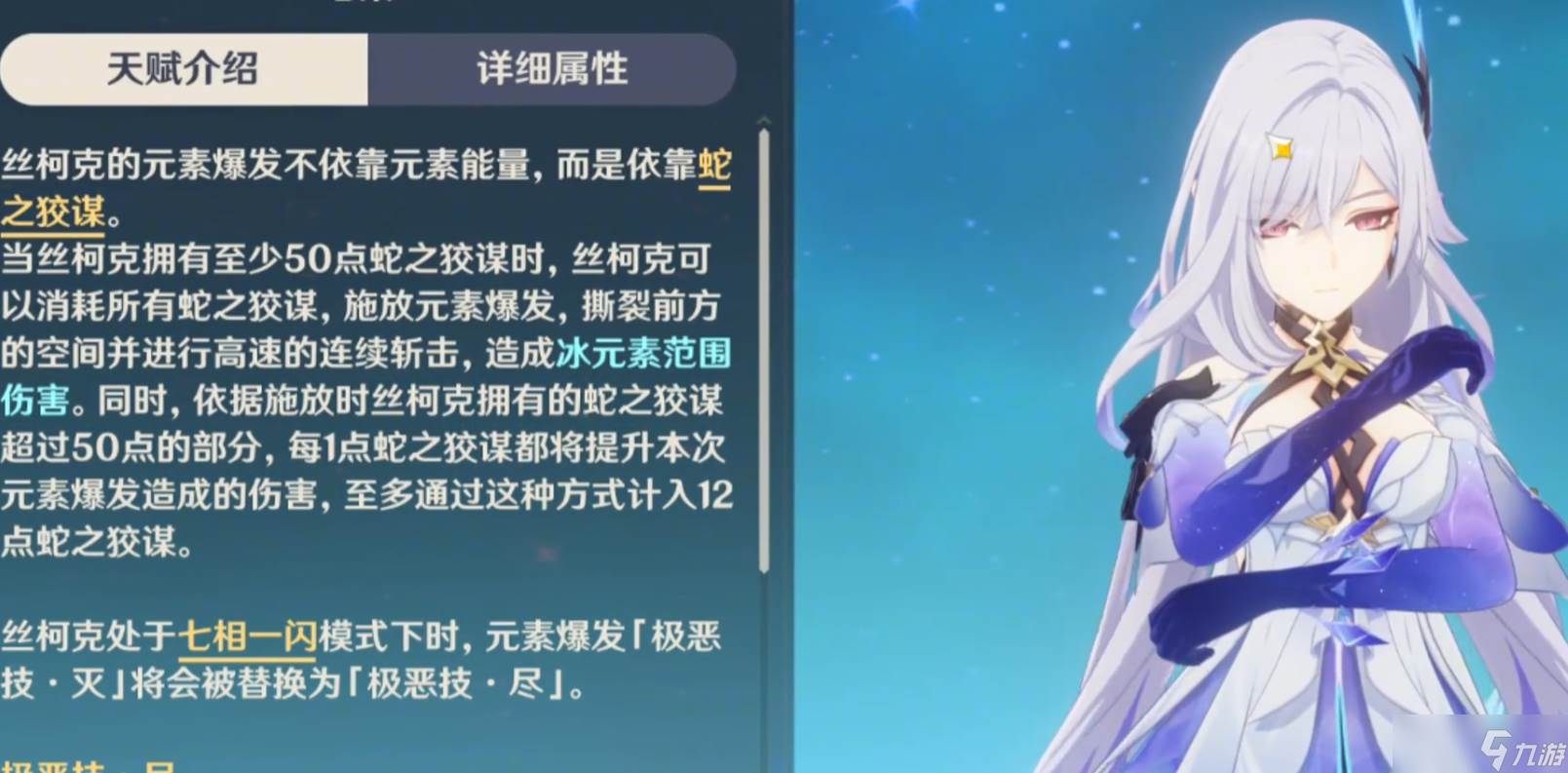 虽说丝柯克存在两种能够输出的方式,并且其各自都有着一定的特色能够使用。但是在实战里面灵活的选择还是很有必要的,一味的只使用一种输出方式虽说大多数的情况下也适用。但是就感觉亏损了一半的石头,毕竟另一个输出方式也是有一定价值的。少玩了一种战斗方式自然是有些亏损了一个人物的价值,当然提供的建议更多的只是给到玩家一些参考。其实从丝柯克的输出方式对比就能发现。更多的时候还是推荐使用黑色形态的战场来输出,但是想要换到常规的白色形态时。