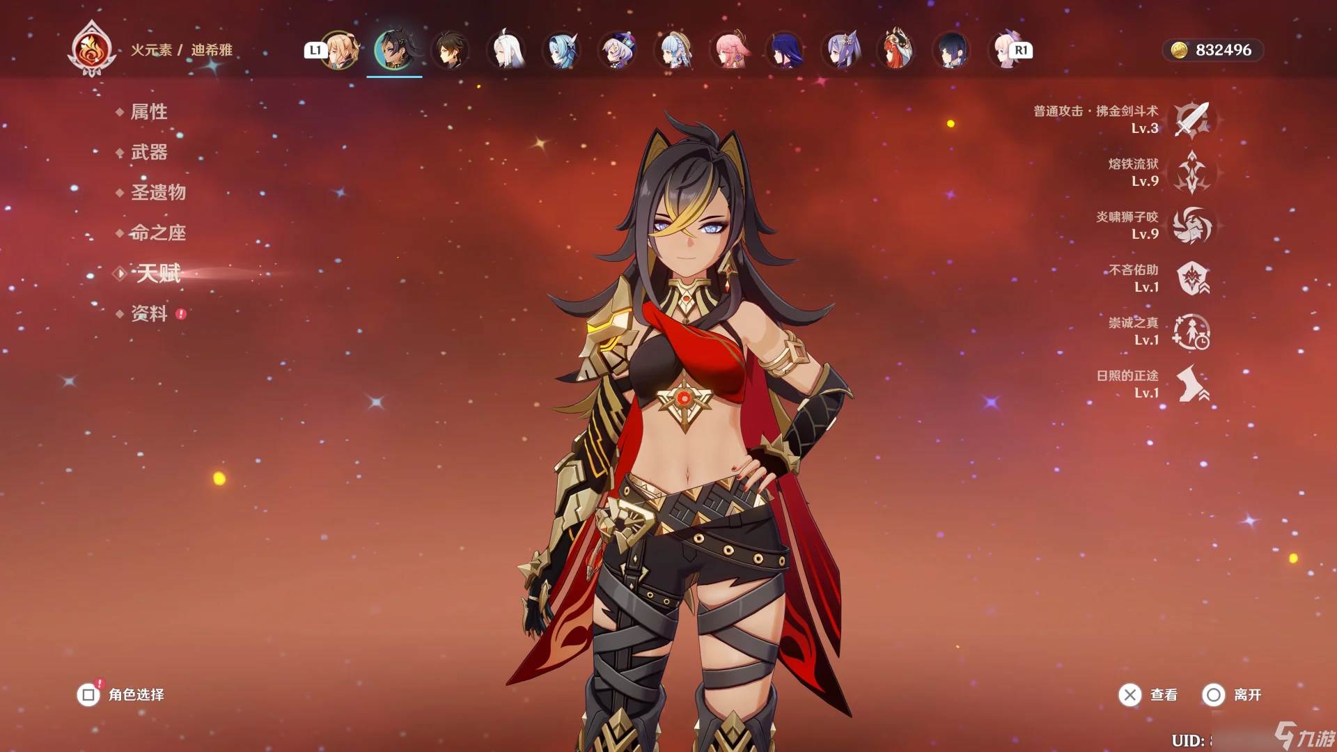 她还会挥拳造成火伤,在炽炎狮子结束时还会用焚落踢来攻击,两种伤害的数值都是由她的攻击和生命属性决定。在使用这个技能时如果场上有净焰剑狱,她会先把这个领域收回去,等到炽炎狮子结束时再放回来。并且在炽炎狮子持续期间,迪希雅的其他技能都不能使用,它们都会变成炎咆连打,提升挥拳的速度。当场上的净焰剑狱被收回时,迪希雅为队友承担伤害时会获得大幅减伤的效果。当她的血量不足百分之40时会自动回血,避免因为血量损失过多阵亡。