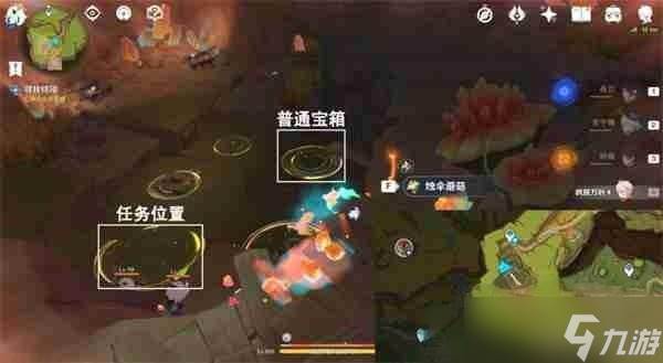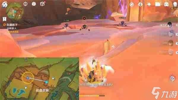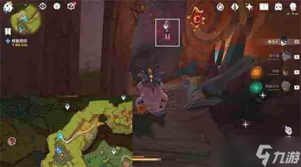 12、朝着地图的北方向击败丘丘人,从缝隙中进入和机关进行交互。