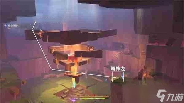 1、传送到硫晶支脉右上方的锚点位置,可以看到一个蓝色的感叹号图标。