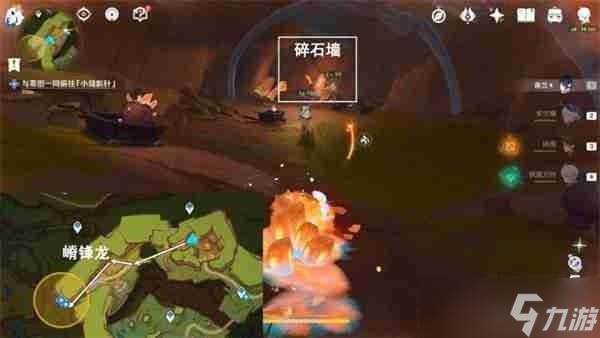 4、按照地图指引朝着西南方向使用岩龙技能撞碎石墙。