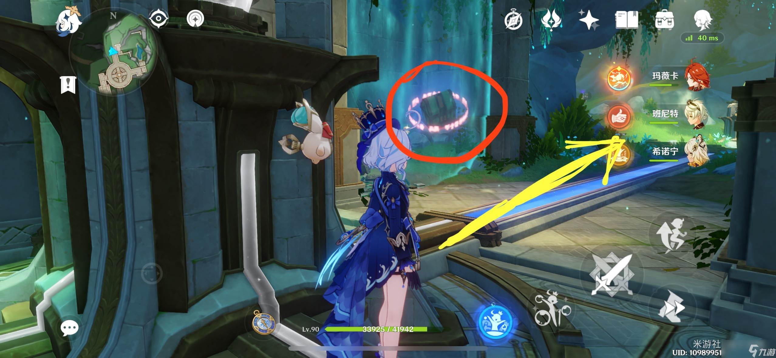 电梯停下即可看到一个奇馈宝箱,就是它了!光墙无法通过,需要沿着黄色箭头继续前进