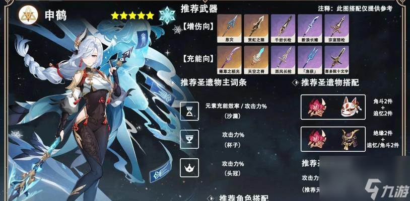 在圣遗物搭配上,建议选择以提升火元素伤害和暴击率为主要属性的圣遗物。适当提升暴击伤害也是不错的选择。同时,也可以考虑搭配一些增加元素充能效果的圣遗物,以减少申鹤技能和元素爆发的冷却时间。