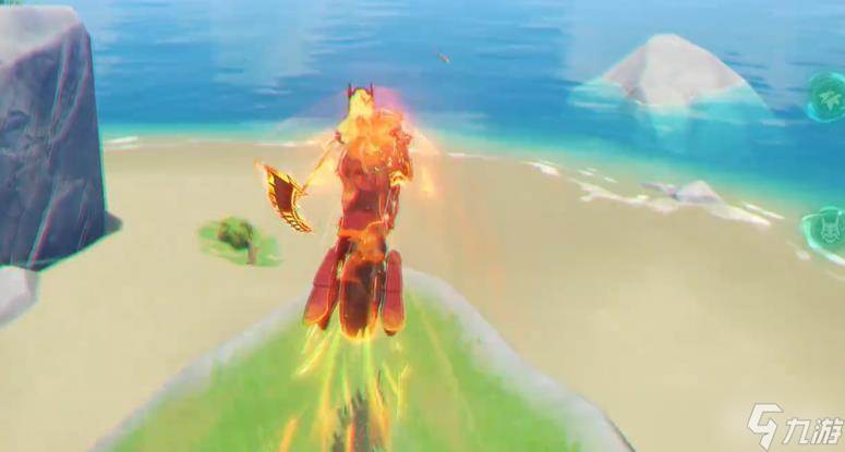 利用地面和石头斜面组成了一个飞跃的斜面平台,玛微卡会骑乘着摩托直接继续往天上飞行一段距离,然后才会出现下降落在地面上的趋势后落地。熟悉好这个弹射飞跃的操作之后,对玛微卡的跑图体验帮助还是很多的。最直接的便是在速度上会快一些,还不用特意的避开一些要绕路的障碍。同时空中移动同样的距离时,其消耗会比在正常的地面上行驶要少一些。精打细算下能够帮助玛微卡减少一些燃素的损耗,比起绕路消耗更多自然是划得来多了。