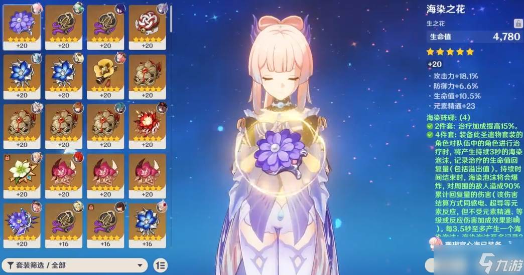 海染砗磲套装效果专注于治疗转化输出,二件套提供15%治疗加成,四件套可将治疗量转化为范围物理伤害。这套圣遗物特别适合珊瑚宫心海、七七等高频治疗角色,能够有效提升其辅助输出能力。治疗产生的海染泡沫最多记录30000点回复量,爆炸时可造成90%累计治疗量的伤害,该效果每3.5秒触发一次。