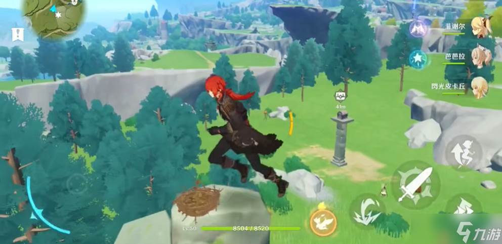 如果没有温迪或万叶这类能制造风场的角色,这个方法是最稳妥的。柱子本身无法直接攀爬,因为中间有凸出的石块会阻挡。附近也没有现成的风场可用,所以借助地形优势才是正解。如果第一次尝试失败,可以重新爬树调整角度再飞一次,多试几次总能成功。