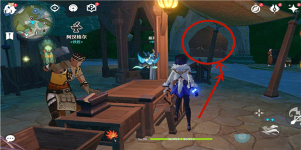 然后按照下图所示路线,来到铁匠铺的位置,铁匠前方有一个隧道入口,这就是大巴扎的入口,进去。