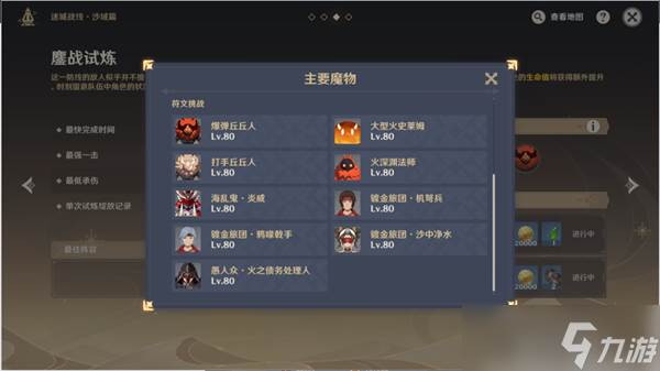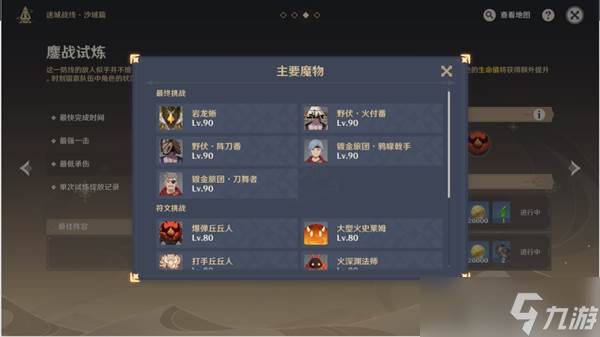 2、符文挑战:丘丘人、史莱姆、深渊法师、海乱鬼、镀金旅团、愚人众。