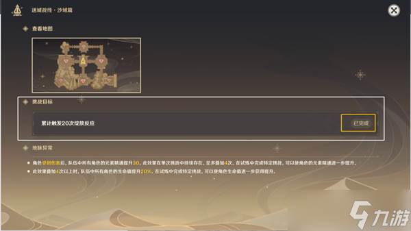 6、在击败魔物后,去查看下是否完成了20次绽放反应。