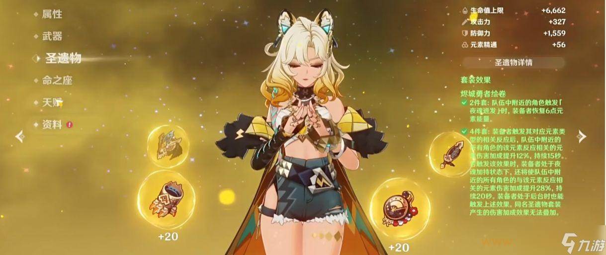 说到圣遗物主词条的选择,时之沙部位优先考虑防御力百分比或者充能效率,具体要看队伍的充能循环情况。空之杯部位毫无疑问选择防御力百分比,这是提升她辅助能力的关键。至于理之冠部位,辅助流可以选择防御力百分比或治疗加成,这样能大幅提高她的治疗效果;如果想玩输出流,也可以考虑暴击率或暴击伤害,不过这种玩法通常需要高命座支持。