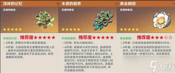 如果队伍中没有其他角色佩戴【深林】四件套,艾梅莉埃也可以考虑选择这套。其降低敌方草元素抗性的效果对团队草系输出有极强的提升作用,尽管艾梅莉埃自身并非以草直伤为主,但在特定队伍体系中能起到有效的协同作用。