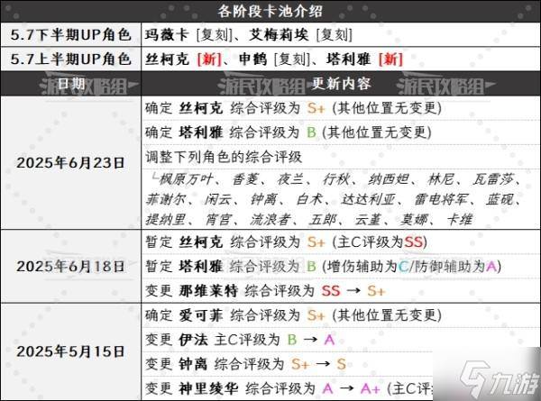 ※各角色评级详细分析请翻页查看!