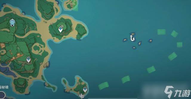 1、踏鞴砂右边有,开船过去就能钓;2、建议按图上绿色路线走,能绕开史莱姆,到地方直接把深渊法师推下去。