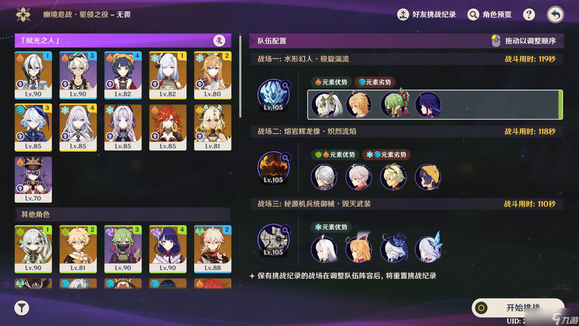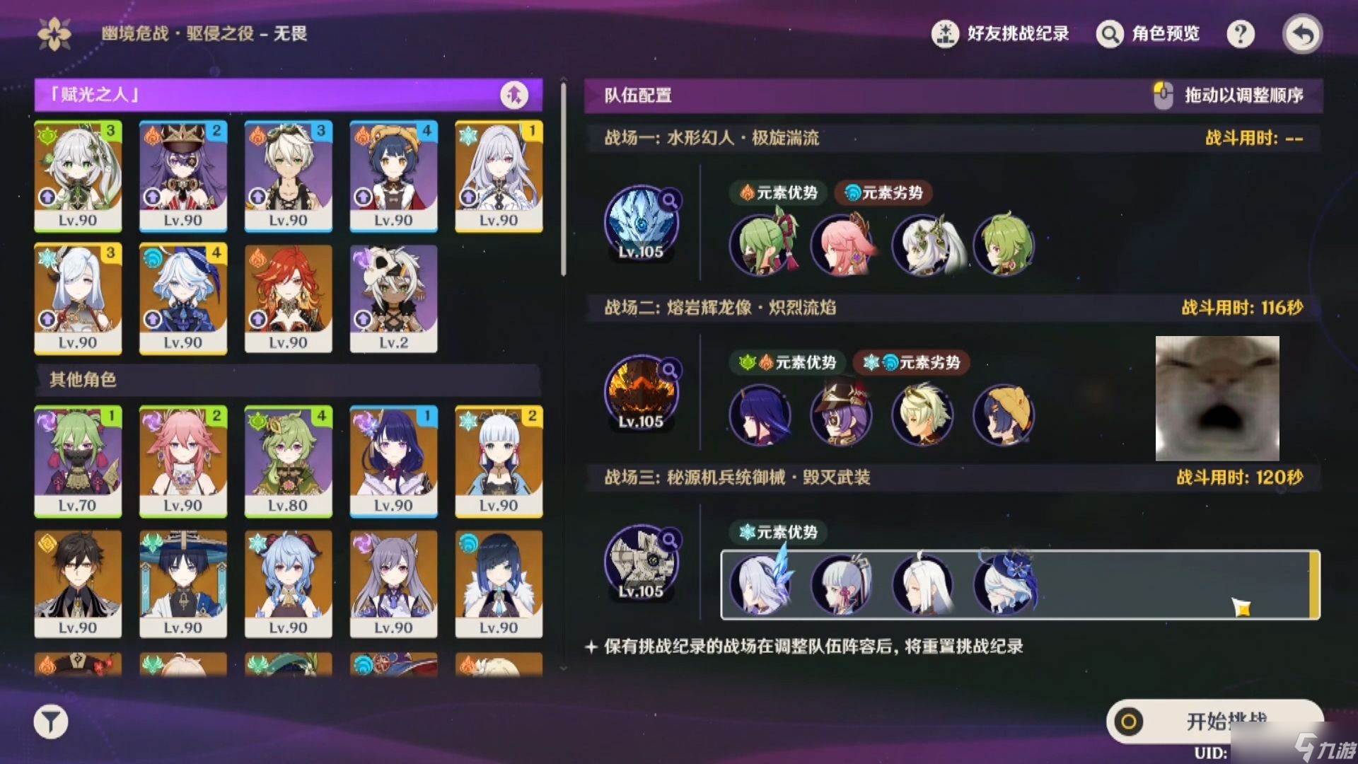 第二间是当前最恶心的火锅怪,该怪物的攻击方式基本可以忽略,没有什么必须躲避的招式,主要就是打入虚弱状态,这个boss没有别的办法,需要用高频火元素来将boss打进失衡,所以香菱、班尼特等比较吃香,至于c位就选我们纳塔性价比最高的角色--瓦雷莎牛牛, 还有枫丹夏沃蕾也是不错的选择,高命座的夏沃蕾可以很快的破除机制,低金的牛牛是最好的角色,同样要注意角色能量之间的循环。