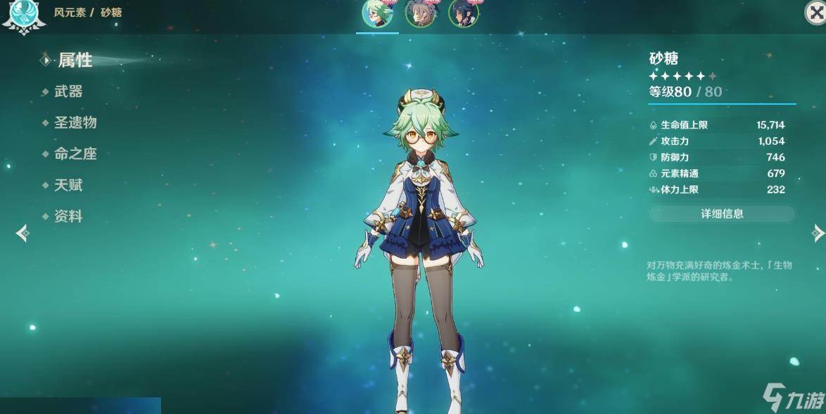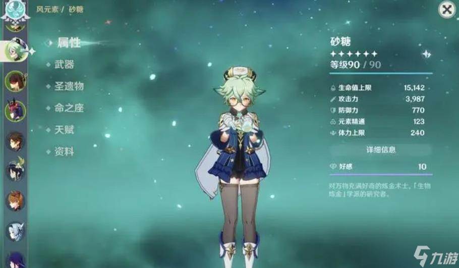 圣遗物的选择上比较推荐的还是军官四件套,因为军官套装的效果就是提高元素精通属性,在集齐后更是可以在一段时间内提高全队角色的元素精通。圣遗物的词条则主要以元素精通和防御为主,因为砂糖只是辅助角色,而且它技能伤害增长并不高,所以只要缩短它技能的使用时间和生存能力就可以了。