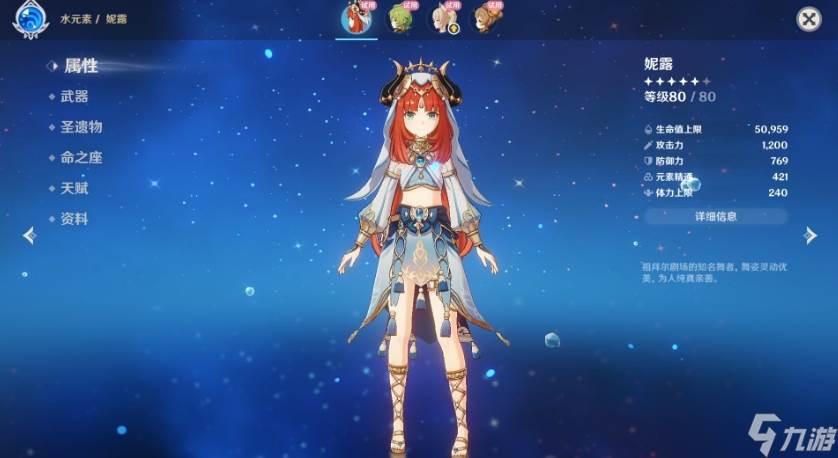 它的天赋除了可增强舞步,并赋予友方金杯丰馈状态外。六十级之后还可解锁翩舞,超过三万点血之后每多出一千点。会让处于丰馈下的友方角色,丰穰伤害提升百分之九。妮露将血堆到极限的时候,核最多能提百分之四百的伤害。它的Q一共包括两段,可挂弱水也可用来打蒸发。配装无需关注它的充能,有缺口也只需在对群时把握节点释放即可。1命的时候,开E后打出的伤害和持续时间都有增加。抽到2命可激活花雨,并让被水伤命中的敌怪水抗降低。