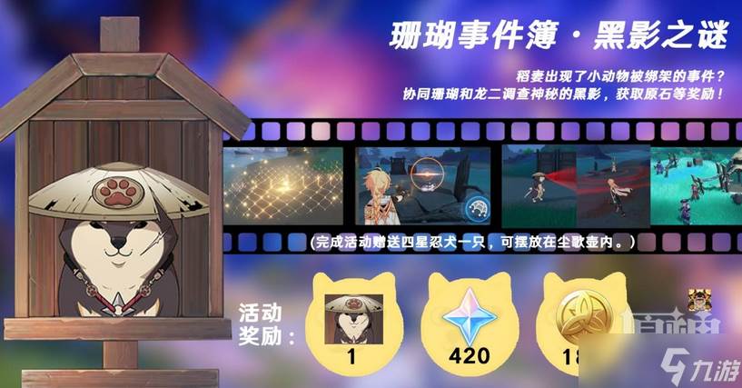 在珊瑚事件簿·黑影之谜的冒险中,完成活动即可获得四星忍犬*4,它们将成为你尘歌壶中的忠实伙伴;同时,利用[四方之网],你还能捕捉到各种可爱的小动物,为你的冒险之旅增添无限乐趣。