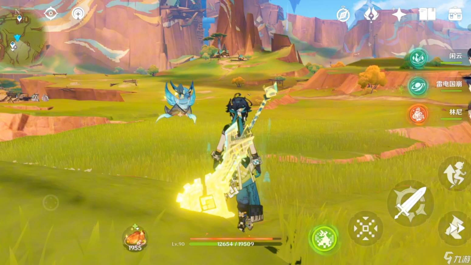 值得一提的是,重击是独立设计的一套模组,投掷大剑进行三段旋转攻击。动作是很新,但倍率给的低,而且依旧遵循二点五秒三次攻击的附着规律。E技能是核心技能,投掷钩锁进行空中摆荡,实现快速位移。若附近存在敌人时,则会勾住目标进入夜魂加持状态。长按E可进入瞄准模式,决定摆荡的方向。期间可以自由行动,没有抗打断提升,会被正常击飞。但是有一点比较好,被击飞后,技能依旧能自动索敌释放,免去了技能进入cd的尴尬。正常情况下,摆荡的位移能力是没有闲云的三段E距离远的。但如果是在一定高度下释放,摆荡的距离比闲云还要远。