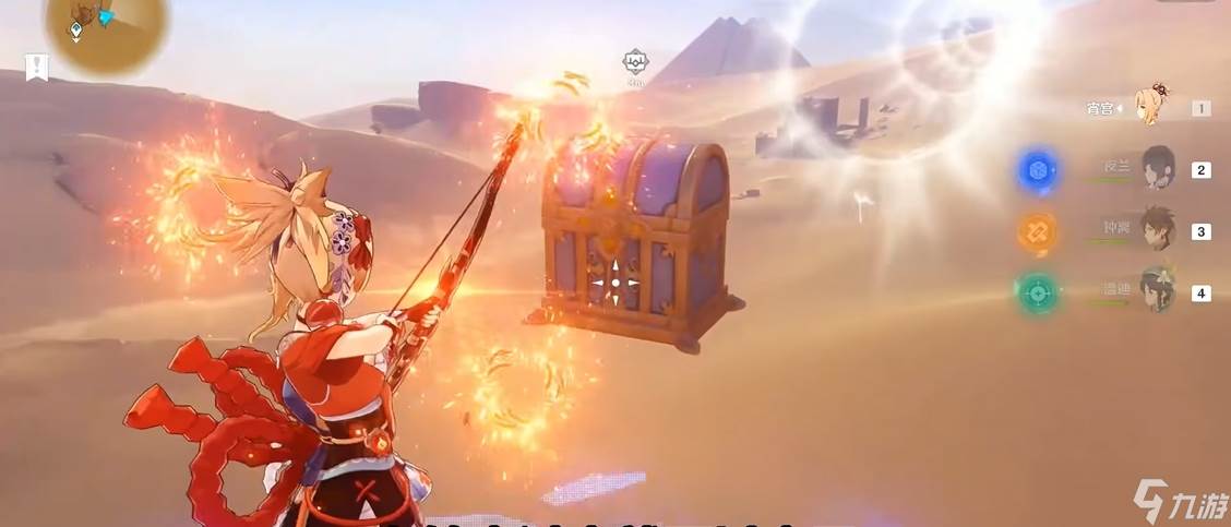 沙堆覆盖的宝箱往往需要风元素角色清理。舍身陷坑上方锚点附近有几个沙堆,吹散后会出现镀金旅团和宝箱;荼诃落谷东南洞窟内被沙堆掩盖的火元素方碑,需要用风元素触发中间烈焰花同时点亮。活力之家下方传送点附近的草种子机关,击打石块就能解锁宝箱,附近草元素方碑还能激活四叶印通路。沙漠大宝头顶有条隐蔽沟壑,靠近时才会显现宝箱。从旁边锚点飞到大宝头部,沿着沟壑中间下落就能触发。