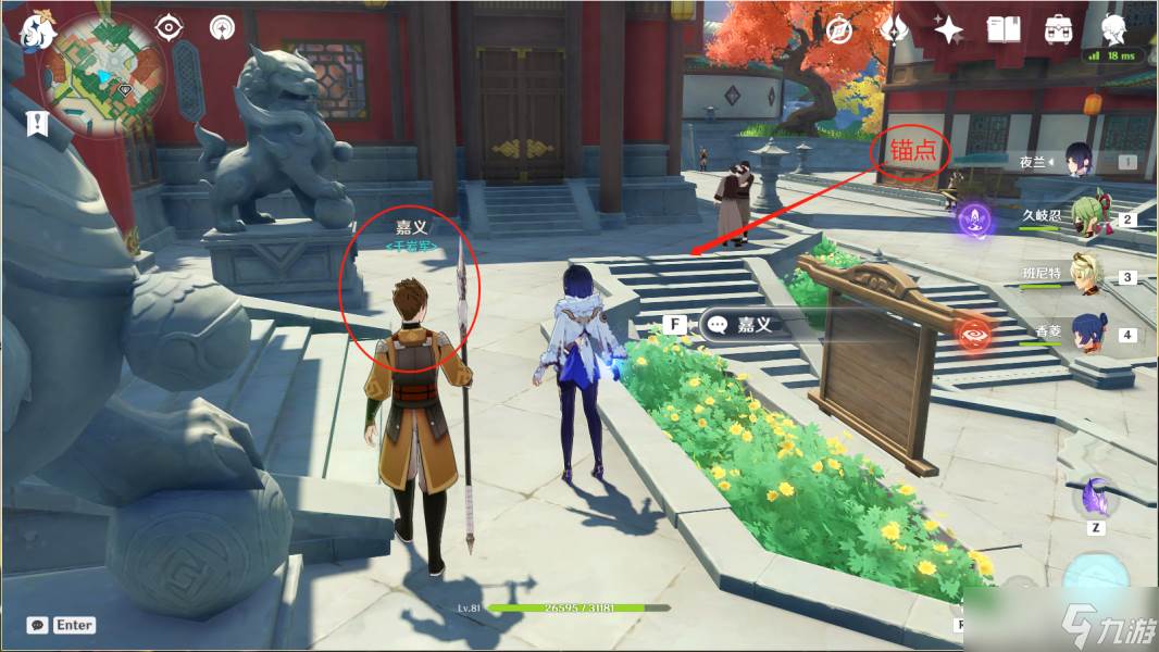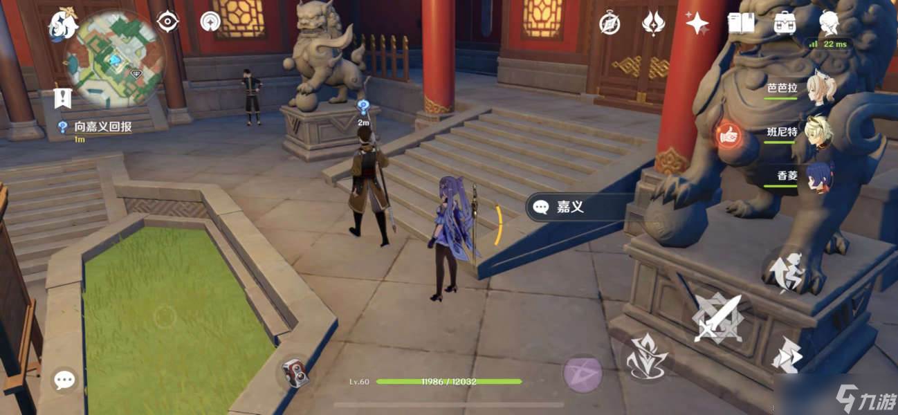 2、传送到璃月港,去跟千岩军嘉义对话触发任务。
