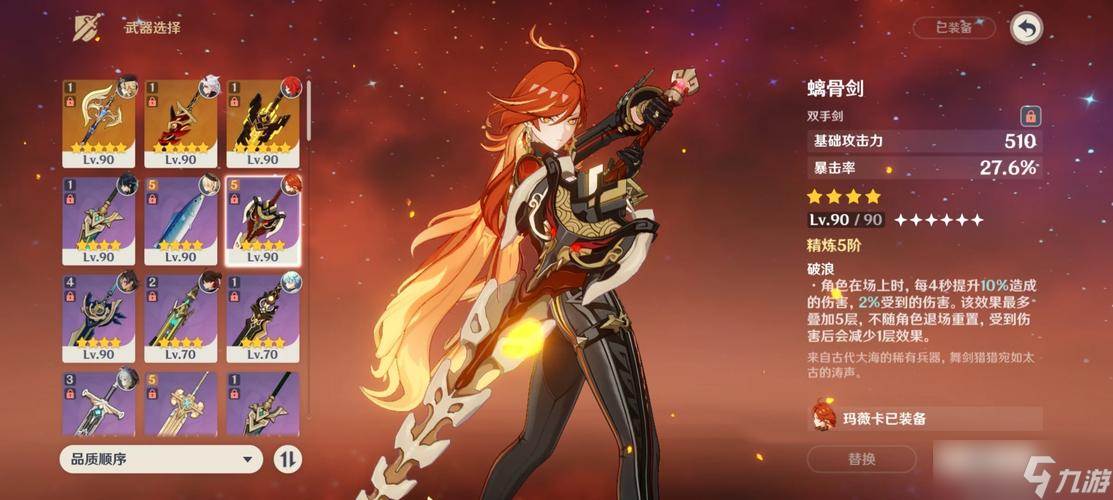 黑岩斩刀的红黑配色与火神的外观风格十分协调,其副属性为暴击伤害,恰好能与黑曜套装的暴击率加成形成互补。武器特效在对抗多目标时能显著提升输出效率,但由于获取途径相对有限,其入手难度高于锻造类武器。试作古华的优势在于获取成本极低,玩家只需收集材料完成锻造即可。即使低精炼也能稳定提供不错的输出支持,适合大部分平民玩家过渡或长期使用。西风剑的基础攻击力较低,但副属性提供了极高的元素充能效率,武器特效在触发时能为全队角色补充元素能量。这一特性使其更适合作为辅助或副C定位的火神使用,不过需要注意角色本身的暴击率需求,避免因暴击不足导致充能触发不稳定。