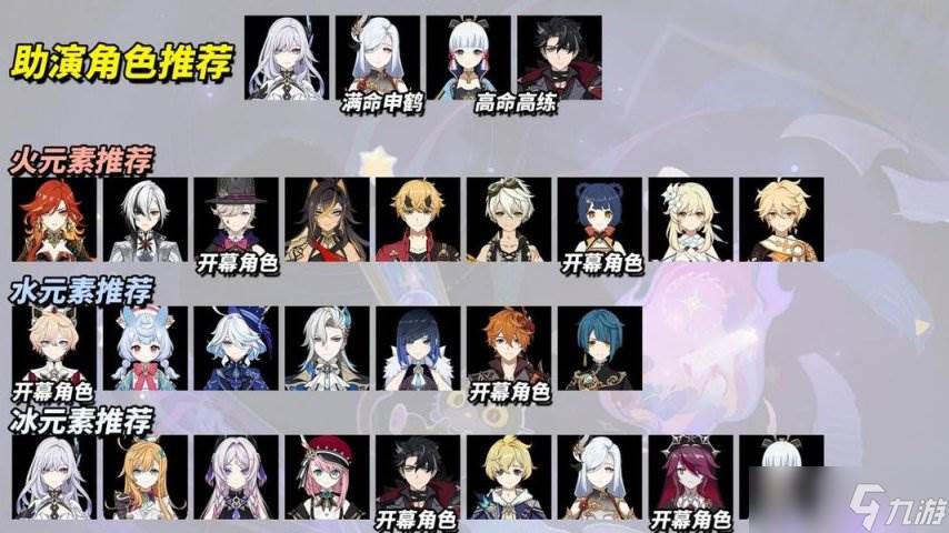 水属性:塔利雅(试用)、希格雯、芙宁娜、那维莱特、夜兰、达达利亚(试用)、行秋