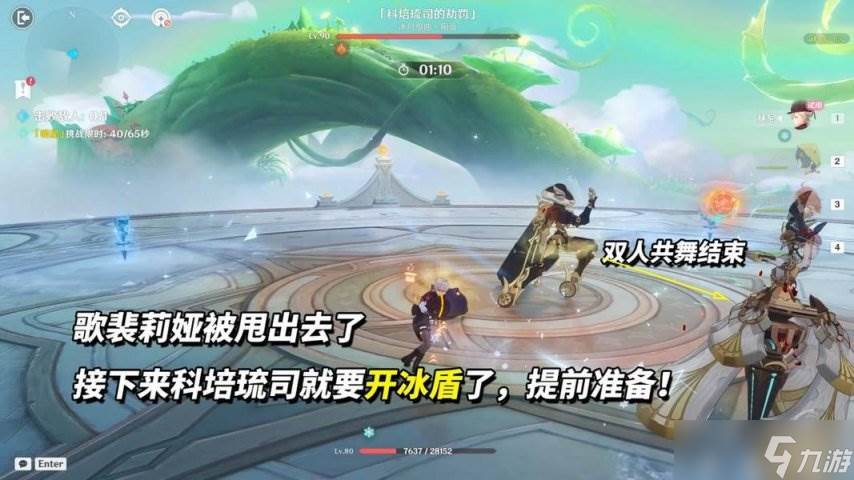 70%冰风抗性,每次当他将歌裴莉娅甩出去的时候都会开启冰盾,此阶段不要浪费一些爆发型技能,需要提前准备火伤破盾即可。带上试用香菱破盾,搭配任意输出角色即可,开头BOSS血量低好打。