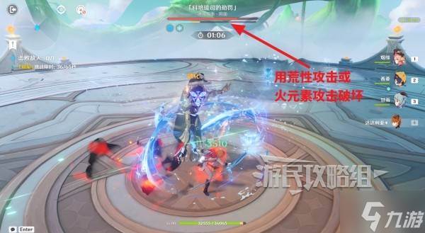 金焰绒翼龙暴君(第8幕):用远距离水元素攻击应对护盾,别忘了破坏设置物。推荐角色为达达利亚、芙宁娜、夜兰、行秋、那维莱特。