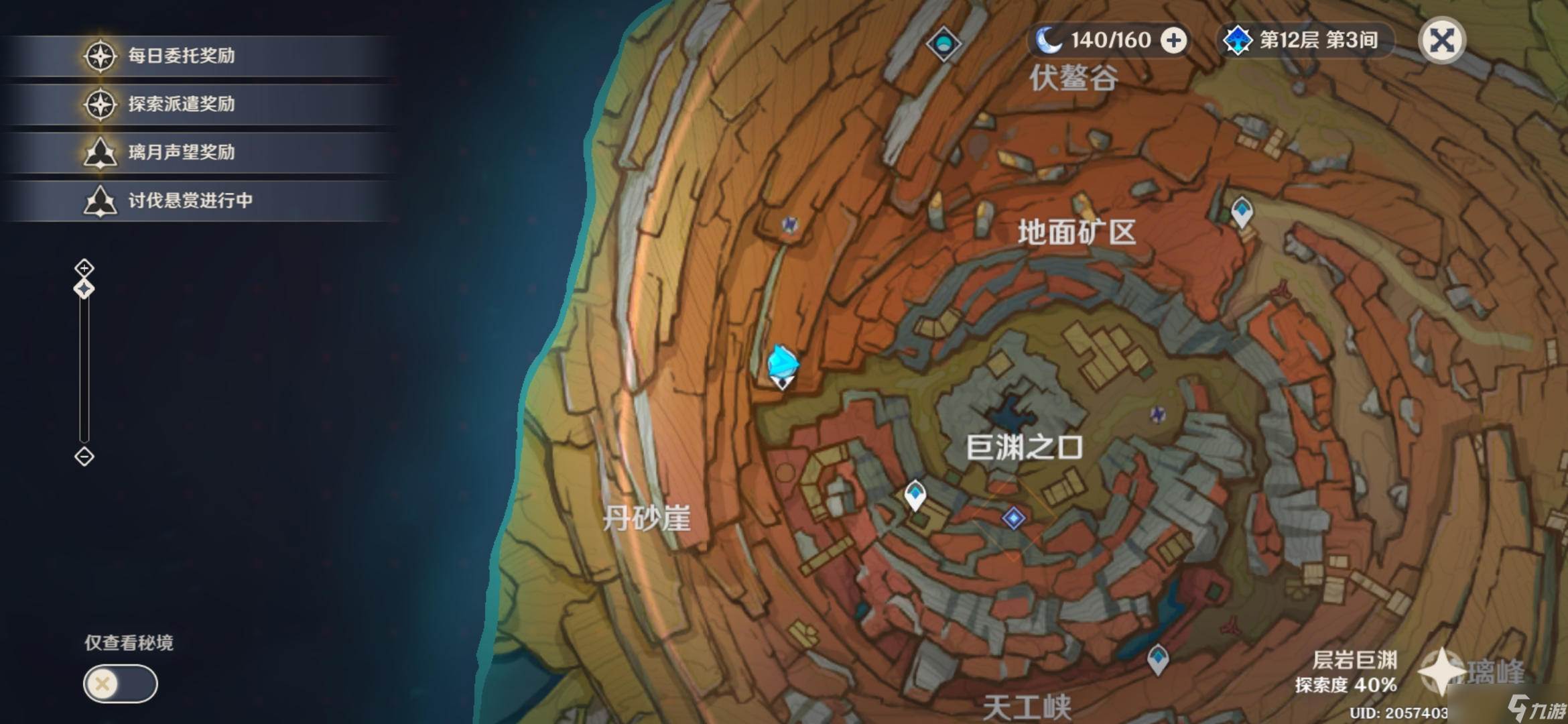 启动地图,精准传送:打开你的提瓦特冒险地图,目光聚焦在层岩巨渊区域。找到那散发着熟悉蓝色光芒的地表七天神像标记。毫不犹豫地点击传送,这是你寻找远眺之花的绝对起点。稳稳落地后,环顾四周,壮阔而略显荒凉的层岩巨渊景色尽收眼底。