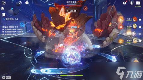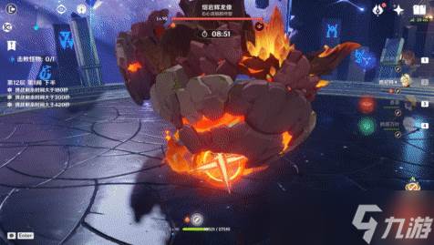 利用足够的火元素攻击,使血条下方的圈圈累积,打满后可使它改变阶段,抗性降低,最后瘫痪。