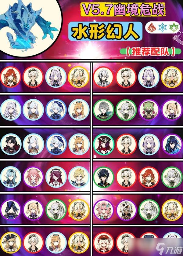每个半幻人的水元素量变为12单位,因此仅有冰、草元素可以最快速地破除,在挑战时最好能带上冰或草的队伍。