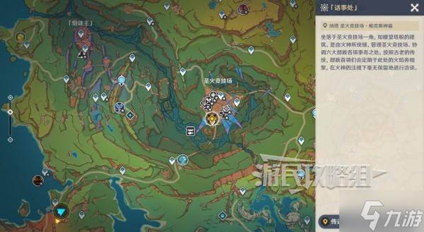 传送到纳塔圣火竞技场的话事处与玛薇卡对话,讨论深渊教团的应对。