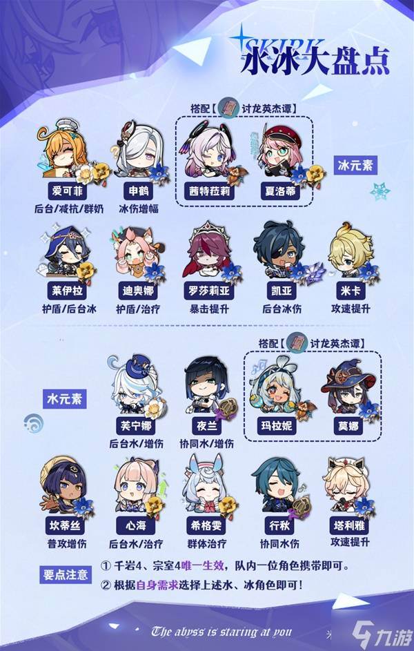 ◆②可在只有1-2名①的角色时选择补充,确保队内有至少1名水元素角色;