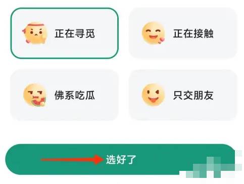 选择【正在寻觅】,点击底部的【选好了】,情感状态就设置成功了。