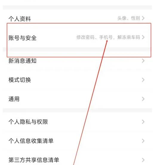 在设置界面中点击“账号与安全”
