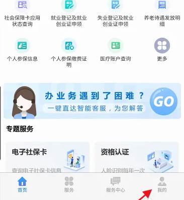 登录内蒙古人社APP成功后,进入首页,点击我的进入