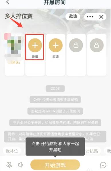 房间创建好了,点击上面的邀请按钮就能邀请朋友愉快的开黑了,快来试试吧