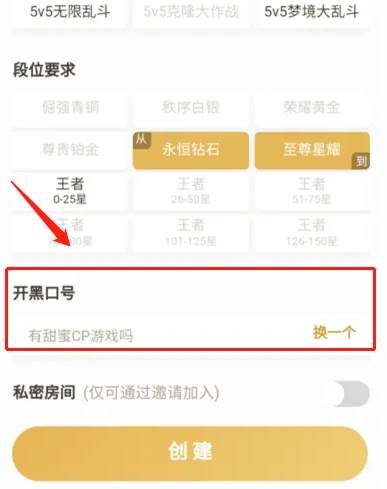 需要想一个开黑口号,可以自己写,也可以点击后面的换一个使用默认的口号。