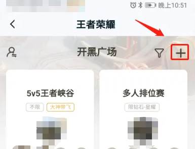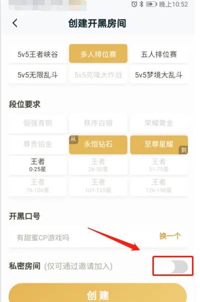 点击右上角的加号,就可以开始创建开黑房间了