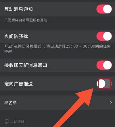 最后点击关闭”定向广告推送”选项,即可完成操作
