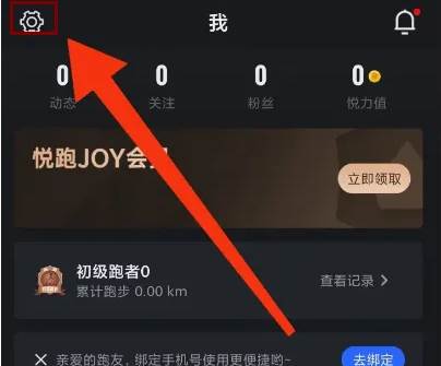 打开”悦跑圈“软件,点击”我的“选择”设置“选项