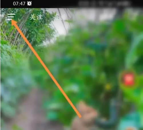 打开手机的抖音火山版软件,点击上面的三横图标。