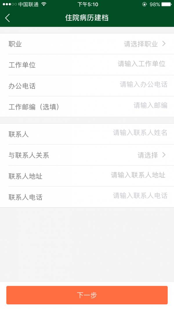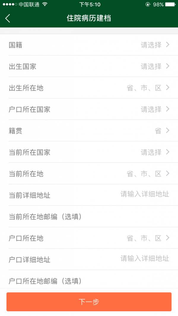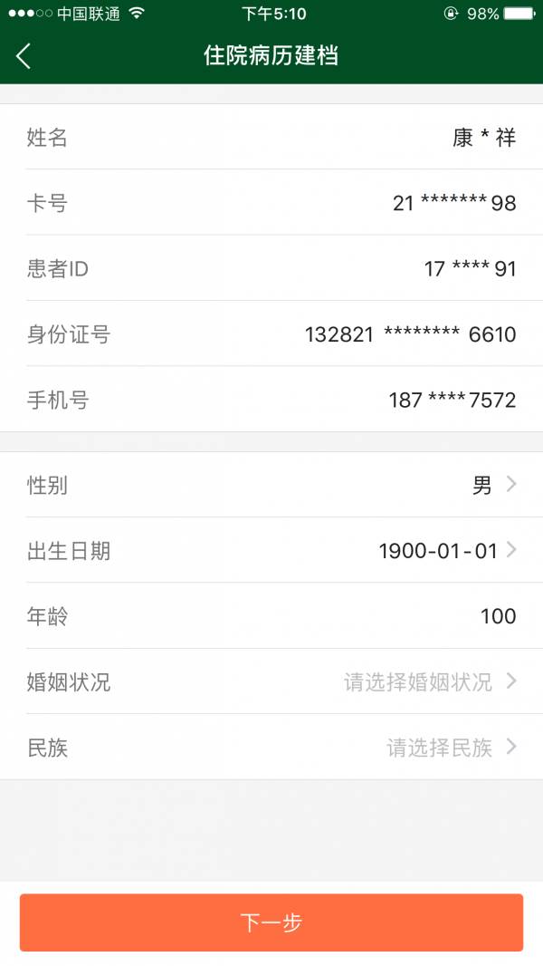 3、进入住院病历建档页面,按页面提示输入相应的信息资料,全部填写完毕点击“提交”即可。