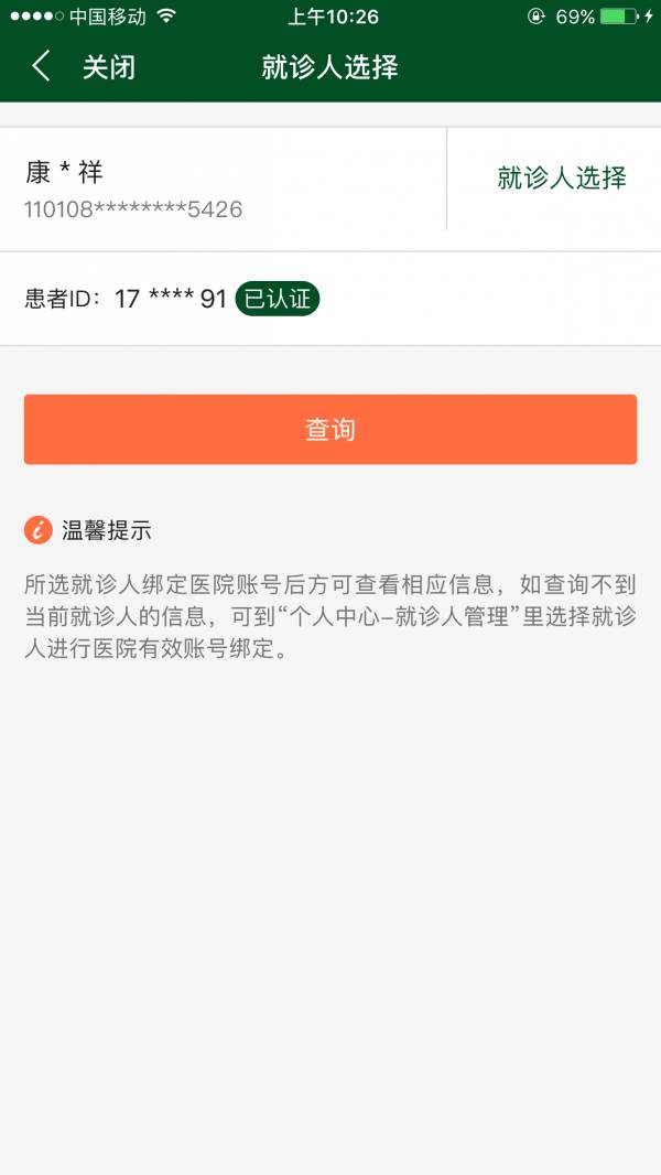 2、在“就诊人信息列表”中选择要住院病历建档的就诊人;