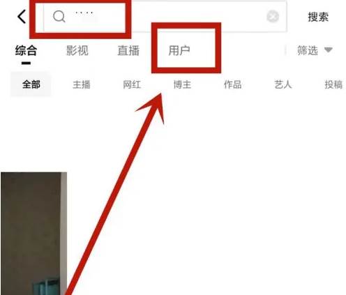 在西瓜视频中输入名字爹泥后点击用户选项。