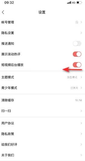 第三步,然后将短视频后台播放的滑动按钮向左滑动,滑动完成后便可以关闭短视频后台播放。