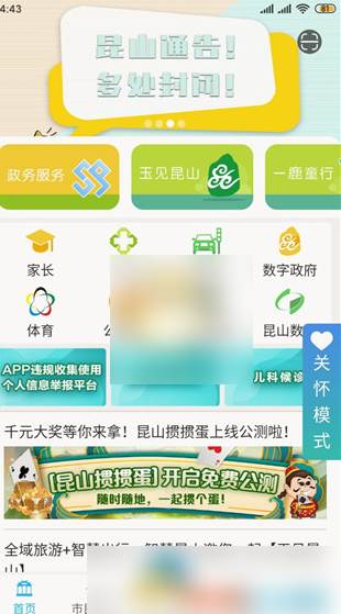 1、下载并安装智慧昆山云平台,进入首页点击家长按钮